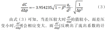 算結(jié)果對(duì)差壓變化的靈敏度的影響。不難發(fā)現(xiàn),在對(duì)差壓值較小的檢測(cè)點(diǎn)進(jìn)行測(cè)量時(shí),流出系數(shù)的靈敏度較大,更容易被差壓測(cè)量結(jié)果的誤差所影響。