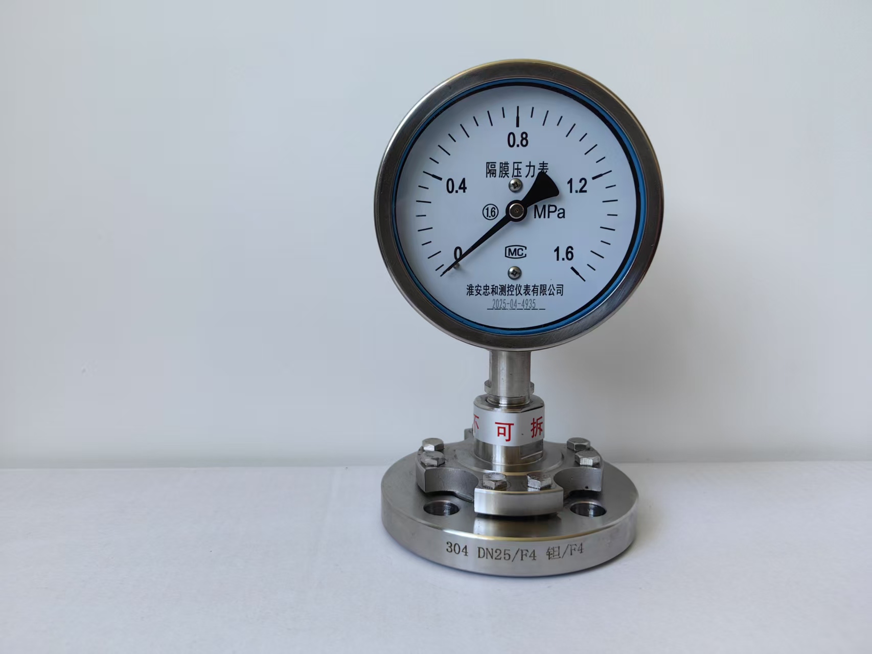 4、用于具有腐蝕性或者高粘度介質的壓力表,在壓力表與壓力容器之間應當安裝能隔離介質的緩沖裝置。