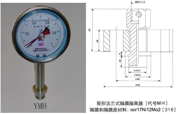 10、MH矩形法蘭式衛(wèi)生型隔膜壓力表(均質(zhì)機用):量程上限10~60MPa